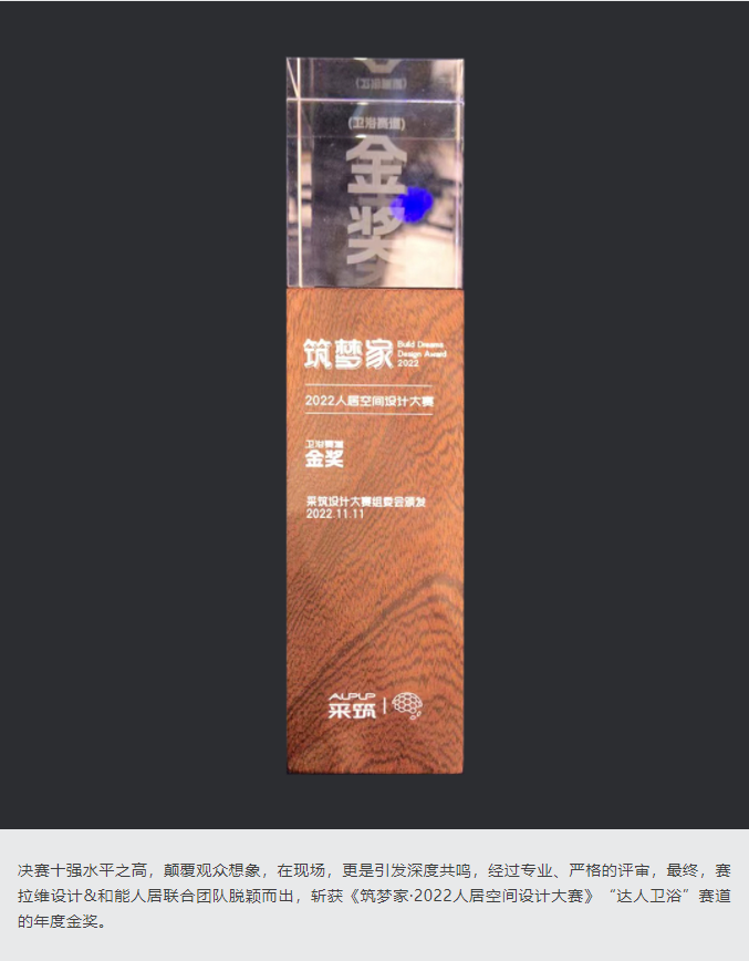 喜訊丨和能攜手賽拉維設計斬獲《筑夢家·2022人居空間設計大賽》“達人衛浴”賽道年度金獎