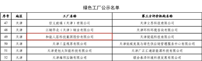 此次公示的2023年度綠色制造名單包含綠色工廠、綠色工業園區,以及綠色供應鏈管理企業公示名單。和能人居科技集團天津濱海智能制造工廠繼2021年入選“天津市綠色工廠”后,成功入選“國家級綠色工廠”。