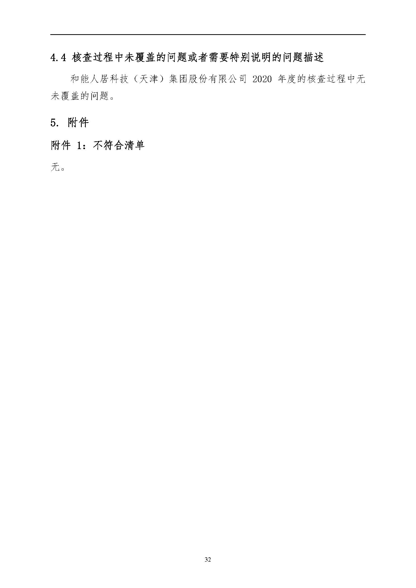 和能人居科技(天津)集團股份有限公司核查報告-2020